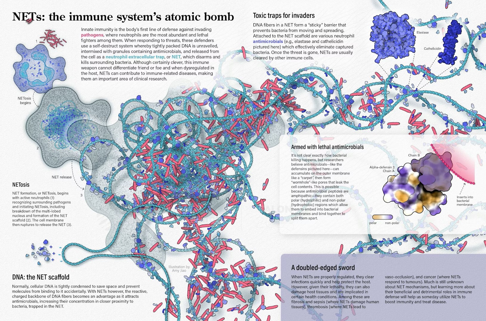 Infographic on NETs: a remarkable defense mechanism of the immune system.